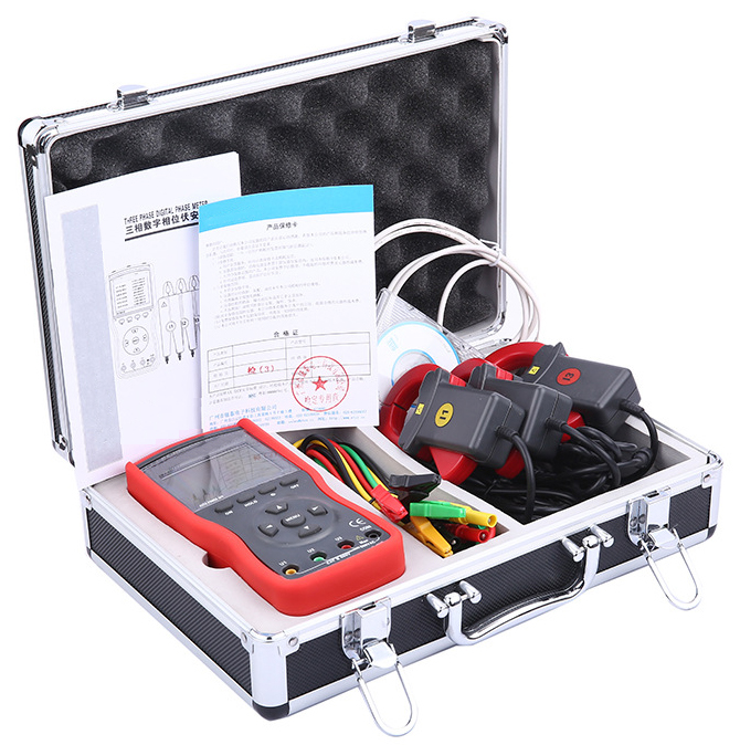 主機(jī):1件;電流鉗:3件;測試線:4條;RS232數(shù)據(jù)線:1條;光盤:1個(gè);電池(LR6):6節(jié);儀表箱:1件