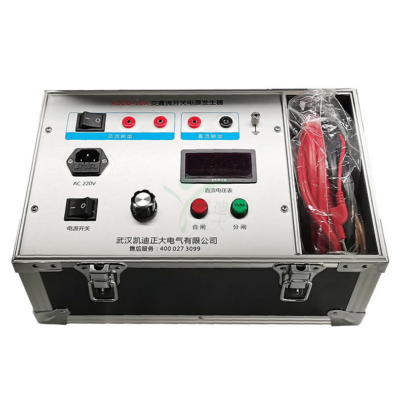 KDZD-20A 交直流開關電源發(fā)生器亦稱高壓開關檢測操作電源,是為對高壓斷路器及其操作機構進行檢測維修而設計的專用電源,具有電壓可調、操作簡單、體積小、攜帶方便等優(yōu)點,是高壓開關檢修不可缺少的檢測工具。