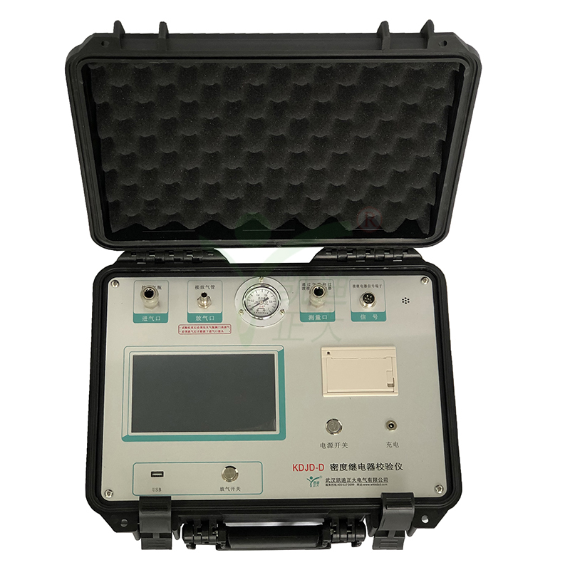 KDJD-D 密度繼電器校驗儀是一種智能化的SF6氣體密度繼電器校驗儀器。該校驗儀采用高精度壓力傳感器及高速率A/D轉換器,結合32位高性能微處理器能對各種SF6氣體密度繼電器進行性能校驗,能準確測量信號動作時當前溫度下的壓力值,自動完成不同環境溫度對20℃時的標準壓力換算,并具有打印、存儲和U盤轉存功能,同時自動識別測試過程中的故障。本產品攜帶方便、操作簡單、測試精度高、穩定性強、可靠性好,體現了儀器“智能型”的特點。