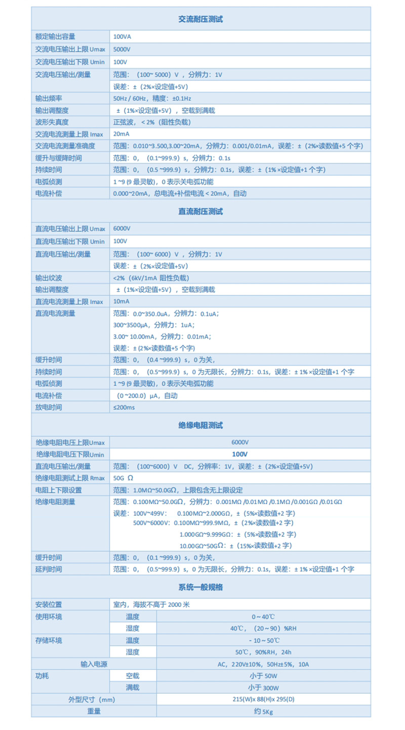 • 輸出電壓范圍:5Kvac/20mA、 6kVDC/10mA;
