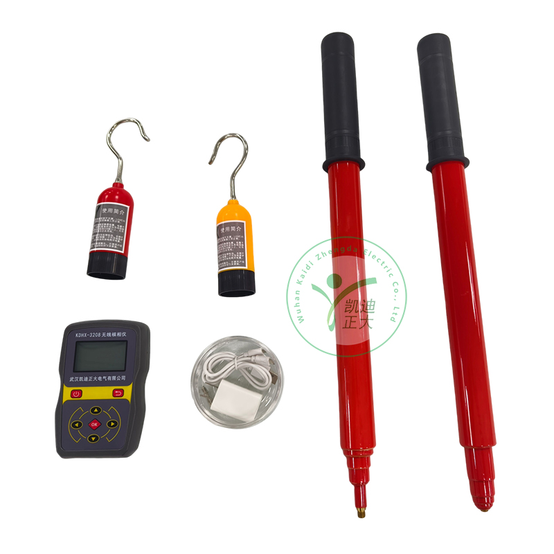 本公司生產的KDHX-3208無線高壓核相儀,主要應用于電力線路、變電所的相位校驗和相序校驗,主要功能包括驗電、核相、測相序等。本產品采用雙重屏蔽及新的數字電路,具有抗干擾性強,符合(EMC)標準要求,適應各種電磁場干擾場合。