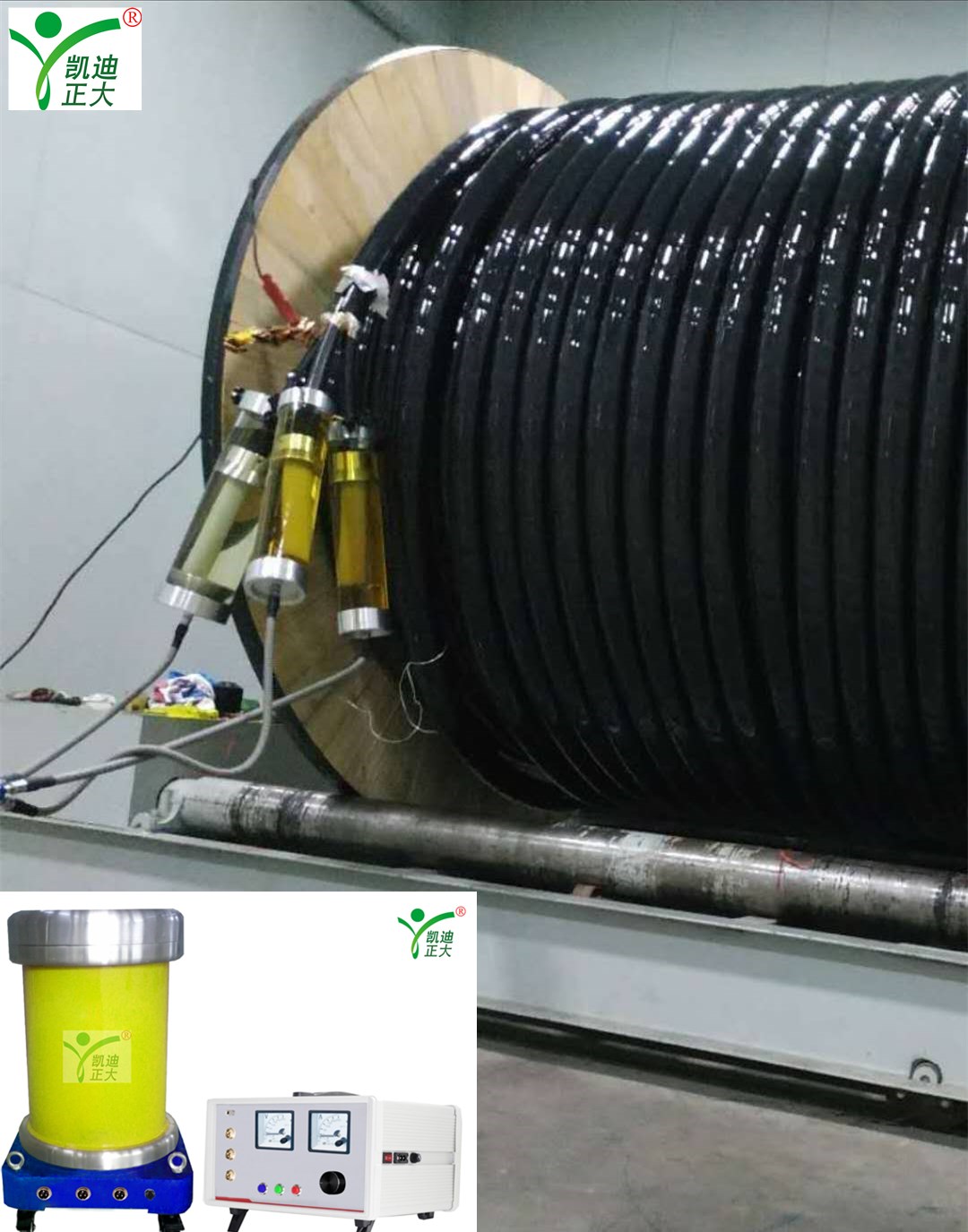 (1)電纜在生產制造過程中,由于某種原因造成電纜絕緣存在著導電的絕緣焦?;螂s質,這種情況下,需進行耐壓擊穿,并找出絕緣擊穿故障點并加以消除,這樣才能進行局放試驗。
