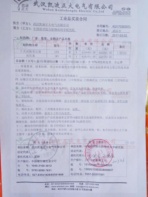 中國科學院合肥物質科學研究院認可我公司干式試驗變壓器,再一次證明了武漢凱迪正大電氣有限公司在電氣試驗設備行業領導者的地位。