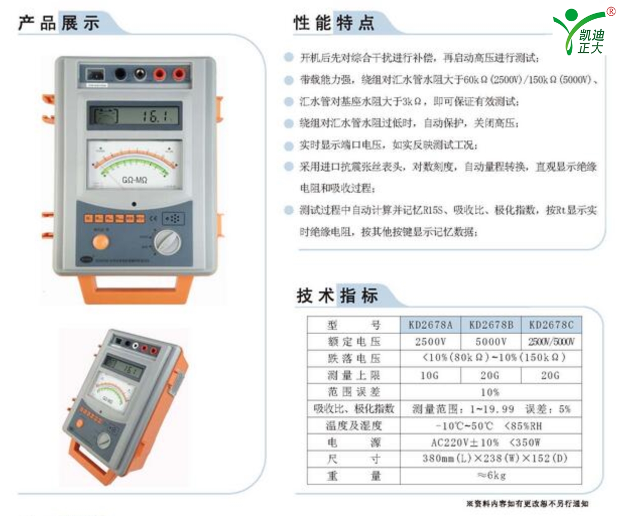 KD2678A水內(nèi)冷發(fā)電機(jī)絕緣測(cè)試儀專用于水內(nèi)冷發(fā)電機(jī)的測(cè)量試驗(yàn),同時(shí)也可用于試驗(yàn)室或現(xiàn)場(chǎng)做絕緣測(cè)試試驗(yàn),該儀器測(cè)量原理新穎,操作簡(jiǎn)便,精度高,整機(jī)采用全集成電路,抗震能力強(qiáng),工作穩(wěn)定性好,輸出短路電流大,在現(xiàn)場(chǎng)環(huán)境下抗干擾能力強(qiáng)。執(zhí)行標(biāo)準(zhǔn):DL/T474.1-2006