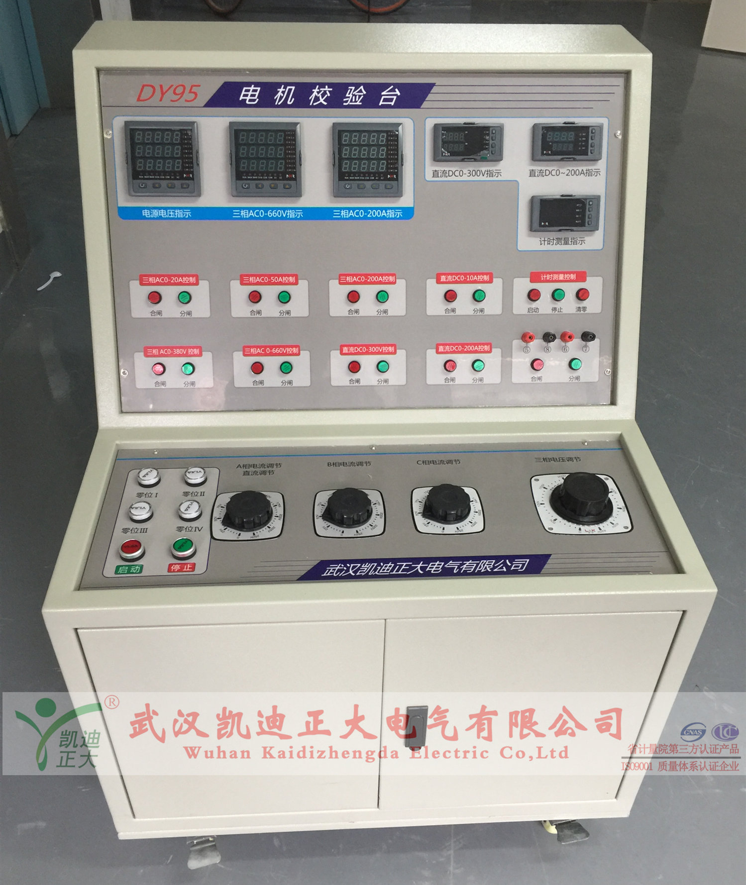 1、DY95電機校驗臺用于高低壓開關柜生產廠家對所生產的高低壓開關柜進行出廠前的各項通電試驗。它能提供各種交、直流電源,便于對開關柜的檢測,提高工作效率。