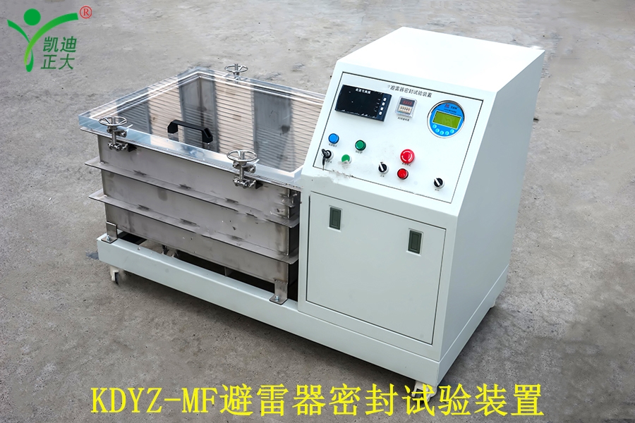KDYZ-MF 氧化鋅避雷器密封試驗(yàn)裝置又稱避雷器水煮密封試驗(yàn)裝置簡(jiǎn)要工作原理:具有空氣內(nèi)腔的產(chǎn)品,在熱水中浸泡,空氣受熱膨脹,使其內(nèi)壁壓強(qiáng)增大,一旦有密封缺陷,膨脹的空氣就會(huì)外溢,在水中產(chǎn)生連續(xù)性氣泡,并以此判定被試驗(yàn)品是否漏氣。