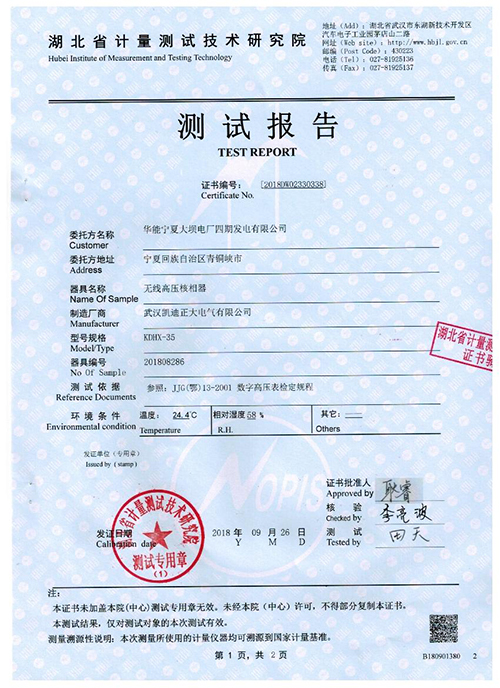 武漢凱迪正大KDHX-35無線高壓核相器校驗證書