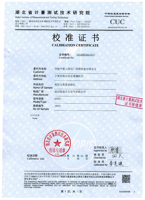 下一篇:武漢凱迪正大KD5000F水內冷發電機泄漏電流測試儀校準證書