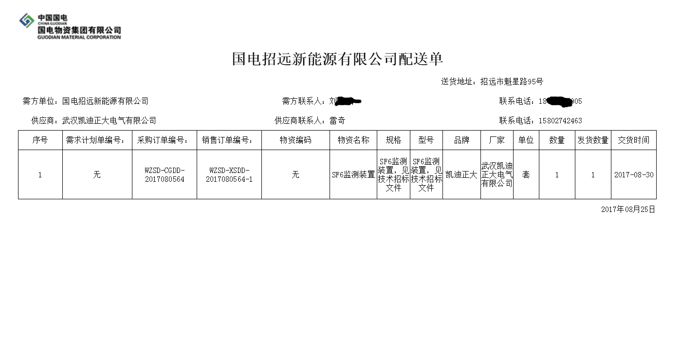 近期江城持續(xù)高溫,酷暑難耐。但絲毫沒有影響凱迪正大同仁的工作熱情,八月中旬,凱迪正大在國電招遠(yuǎn)新能源有限公司《35KV配電室加裝SF6監(jiān)測裝置項目》招標(biāo)采購中,憑借著良好的市場信譽,可靠的產(chǎn)品質(zhì)量成功拿下此標(biāo)的。詢價單編號:WZSD-2017080285