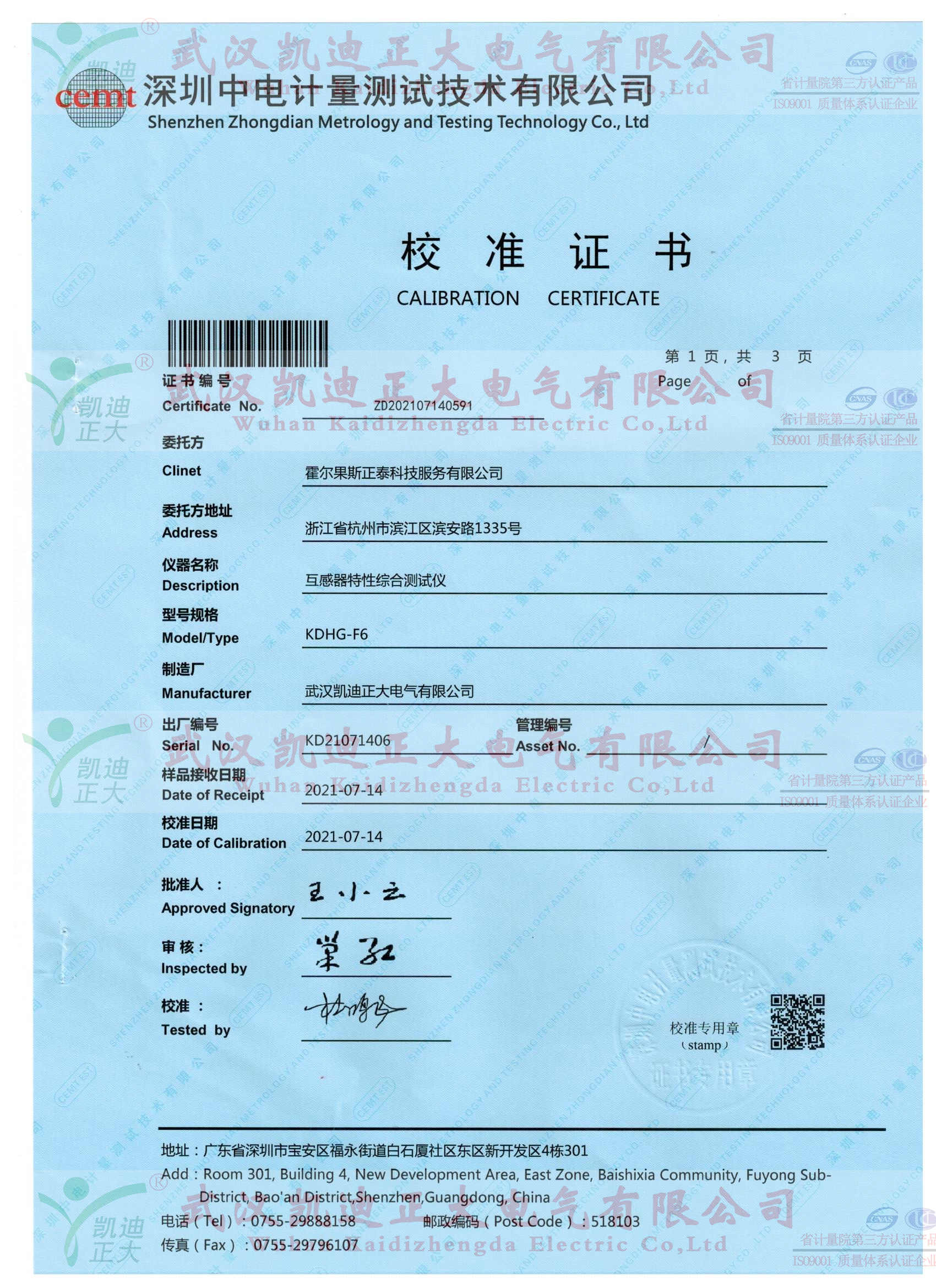 6路互感器綜合特性測試儀獲得中電計量校準證書