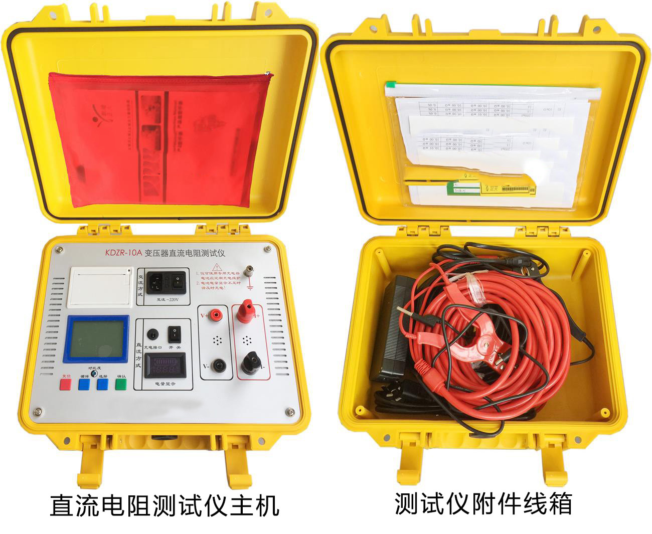 KDZR-10A變壓器直流電阻速測試儀是變壓器、互感器、電抗器、電磁操作機構等感性線圈制造中半成品、成品出廠試驗、安裝、交接試驗及電力部門預防性試驗的測項目,能有效發現感性線圈的選材、焊接、連接部位松動、缺股、斷線等制造缺陷和運行后存在的隱患。為了滿足感性線圈直流電阻快速測量的需要,武漢凱迪正大電氣有限公司利用自身技術優勢研制了KDZR-10A變壓器直流電阻測試儀采用全新電源技術,具有體積小、重量輕、輸出電流大、量程寬、數字顯示、內部鋰電池供電等特點。整機由單片機控制,自動完成自檢、數據處理、顯示等功能,具有自動放電和放電指示功能。儀器測試精度高,操作簡便,可實現直阻的快速測量。