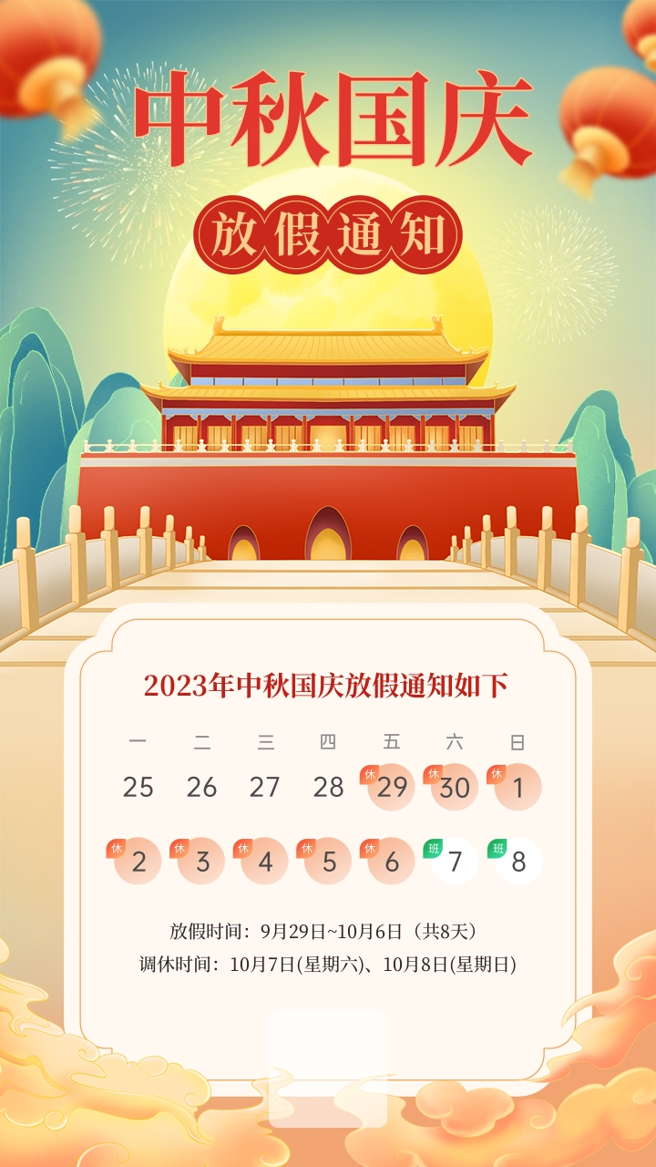 2023年武漢凱迪正大中秋、國慶節放假通知