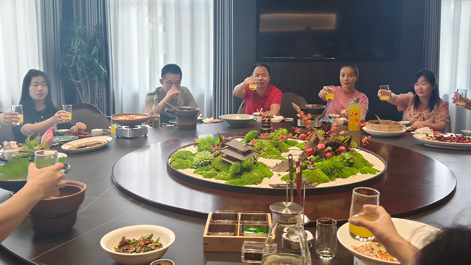 隨著聚餐的正式開始,公司領(lǐng)導(dǎo)向全體員工表達了節(jié)日的祝福。大家舉杯共祝,歡聲笑語充滿了整個餐廳。